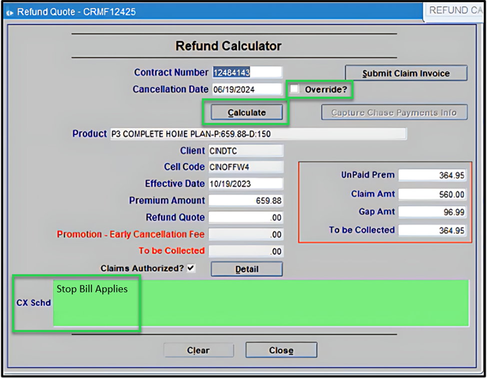 The amount due from the customer will be displayed in the To Be Collected field on the right. If a $25 cancellation fee applies, it is already included in the amount.