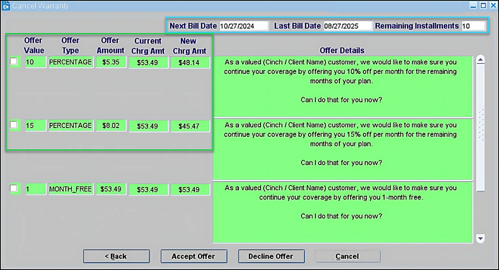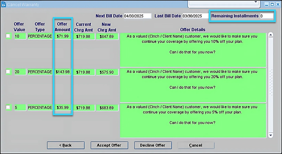 We are responsible for introducing and collecting the lesser of the two for all warranty types. You will build value and follow retention guidelines and only introduce lesser of the two when retention efforts have been exhausted.