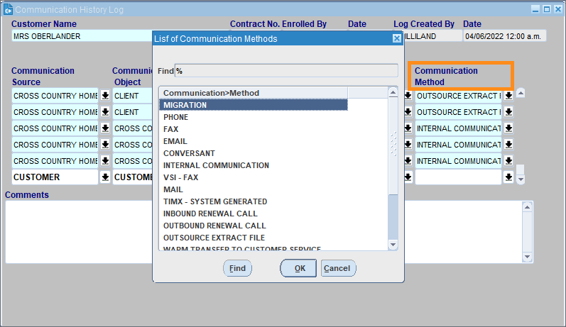 When this Communication Type is selected, a Disposition Code must be entered at the bottom of the Communication History Log screen.