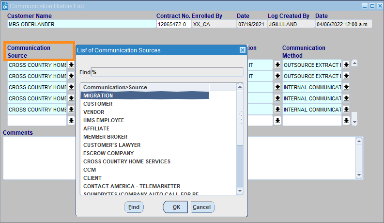 Communication Source | Displays the notes by who called in the request or initiated the documentation (e.g., customer, real estate agent, member broker, account executive) |