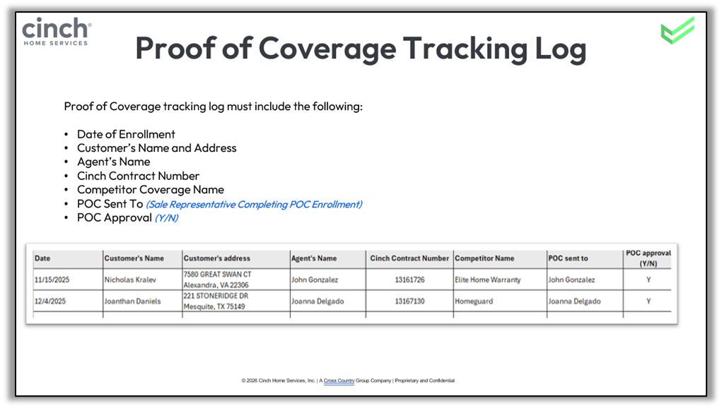 - Update the POC log for tracking purposes.