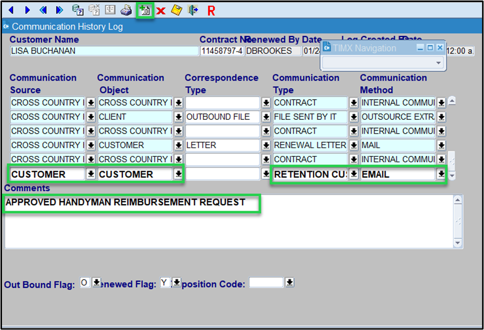 c. Communication Type - Retention Customer Service (This selection populates the Disposition