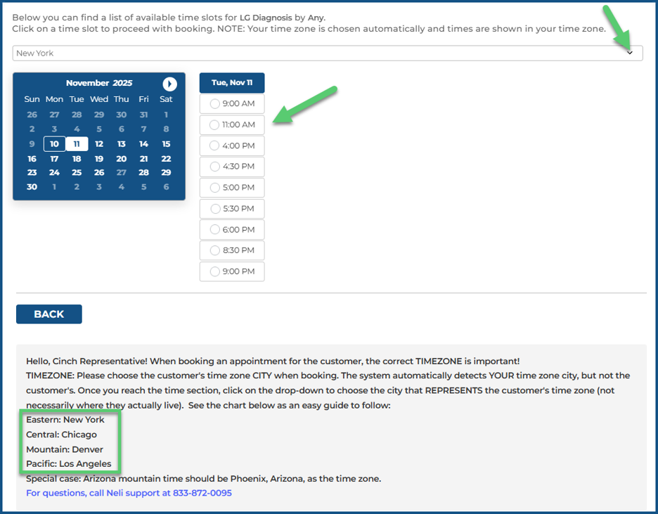 - Once the booking is complete, a confirmation will display. Advise the customer they will receive direct phone and email communications from Neli regarding their appointment and next steps.