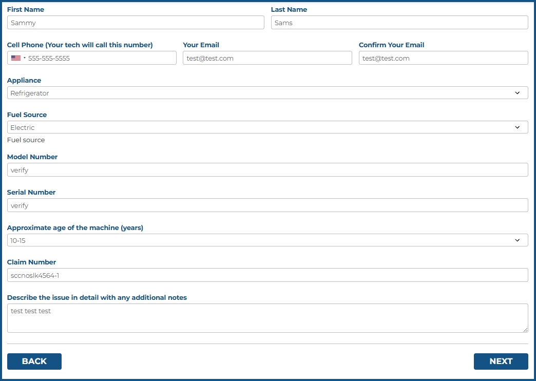 - Choose Brand of the Appliance being serviced or Other if not listed