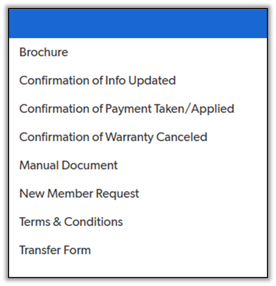 Transfer Form: used when an existing customer wants to transfer the remaining terms of their contract over to the buyer.