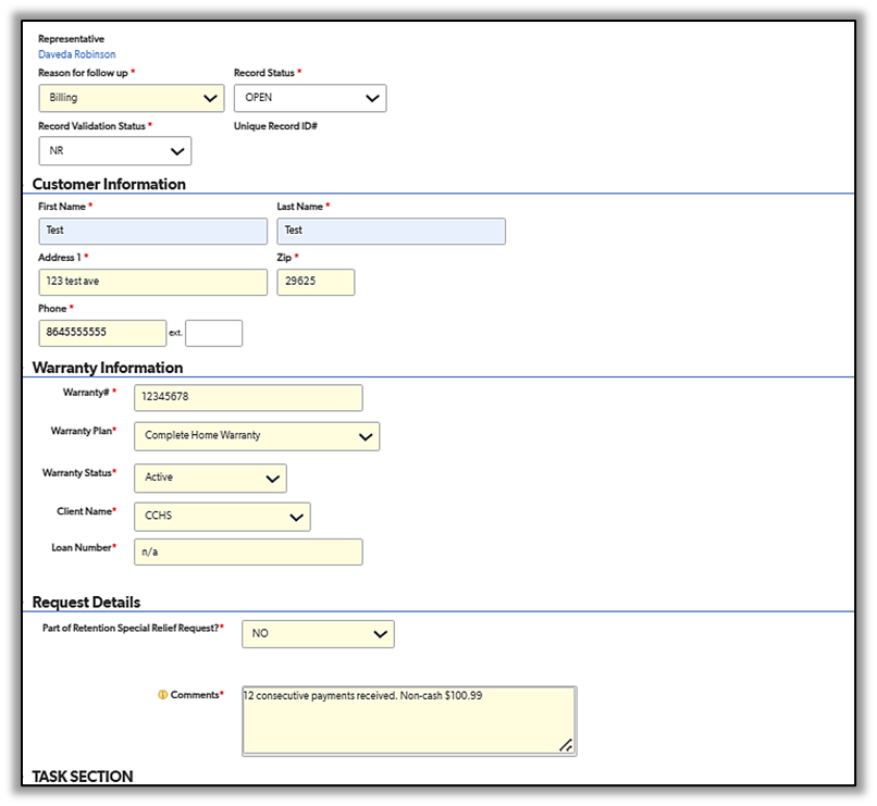 To maximize efficiency, QuickBase is used by "on phone" Associates to initiate follow-up requests for activities that will be completed by a member of the "off phone" team.