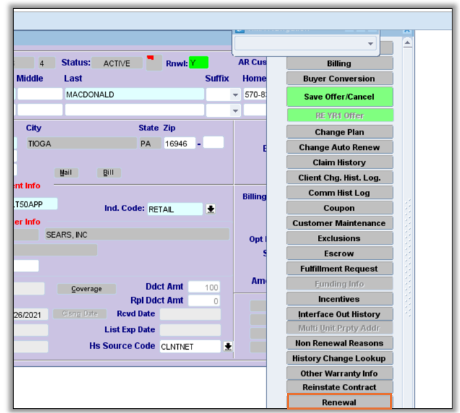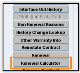 - Click Menu Options and select Renewal Calculator to provide the renewal amount prior to processing the renewal.